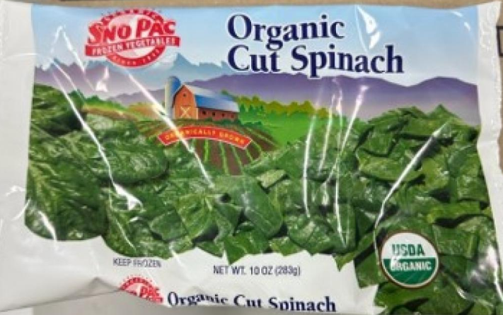 The FDA reported that Sno Pac Foods (Caledonia, MN), recalled Del Mar 35 LB Bulk Organic Frozen Spinach and Sno Pac 10 oz Organic Frozen Cut Spinach because they have the potential to be contaminated with Listeria monocytogenes. The recalled Frozen spinach was distributed nationwide in retail stores and through distributors. No illnesses have been reported to date in connection with this problem. A bulk case of spinach from their supplier was tested and found to be positive for Listeria monocytogenes. It belonged to the same lot code used to repack the Sno Pac Organic Frozen Cut Spinach into 10 oz packages. The production of the product has been suspended while the company continues to investigate the source of the problem. @ https://www.fda.gov/safety/recalls-market-withdrawals-safety-alerts/sno-pac-foods-recalls-del-mar-35-lb-bulk-frozen-spinach-and-10-oz-organic-frozen-cut-spinach