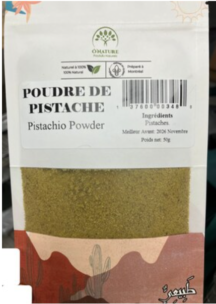 In Quebec, the Ministry of Agriculture, Fisheries and Food (MAPAQ), in collaboration with the Food Inspection Division of the City of Montreal and the company Ô Nature (1376 Mont-Royal Avenue East, Montreal), advises the public not to consume natural, unshelled pistachios and pistachio powder due to potential Salmonella contamination. The warning follows food product recalls issued by the CFIA, due to a national outbreak of Salmonella infections linked to contaminated pistachios distributed to various establishments across Canada. The recalled products by Ô Nature are Natural raw pistachios without shells, 80 g and 250 g, with an expiry date of January 2027, and Pistachio powder 50 g, with an expiry date of November 2027. Raw, natural, unshelled pistachios, previously warned about, were offered for sale until September 18, 2025. The warning has now been expanded to include pistachio powder as well. All affected products were packaged in sealed plastic bags and stored at room temperature. @ https://www.quebec.ca/nouvelles/actualites/details/mise-a-jour-avis-de-ne-pas-consommer-de-pistaches-et-de-la-poudre-de-pistaches-vendues-par-lentreprise-o-nature-66072