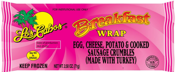 The USDA-FSIS announced that M.C.I. Foods Inc. (Santa Fe Springs, California), recalled approximately 91,585 pounds of specific lots of ready-to-eat (RTE) breakfast burrito and wrap products containing egg that may be adulterated with Listeria monocytogenes (Lm). The individually packaged and bulk packed frozen breakfast burritos and wraps were produced between September 17, 2025, and October 14, 2025. The products were shipped to foodservice institutions nationwide. The Los Cabos, El Más Fino, and Midamar brand products are included in the USDA’s National School Lunch and Breakfast Programs. The problem was discovered when M.C.I. notified FSIS of a positive Lm result in the scrambled egg component after the firm conducted routine sampling and testing of RTE ingredients from its external suppliers. There have been no confirmed reports of illness due to consumption of these products. Anyone concerned about illness should contact a healthcare provider. @ https://www.fsis.usda.gov/sites/default/files/food_label_pdf/2025-10/Recall-032-2025-Food-Labels.pdf