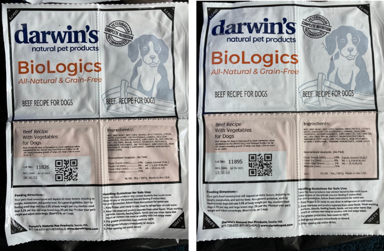 The FDA cautioned pet owners that one sample of Darwin’s Natural Pet Products dog food made by Arrow Reliance, Inc. tested positive for Listeria monocytogenes, and a second sample tested positive for Salmonella and Listeria monocytogenes. The FDA conducted this testing as part of a follow-up on a consumer complaint. The affected products are sold online through a subscription service in frozen 2-pound packages and consist of certain lots of Darwin’s BioLogics All-Natural & Grain-Free Beef Recipe for Dogs. The FDA recommended that Arrow Reliance, Inc., recall the two affected product lots. The firm reportedly sent a letter to customers notifying them about the two lots testing positive for Listeria monocytogenes, but the letter did not inform customers about the presence of Salmonella in one of the lots. Although Arrow Reliance may have notified its customers that it is withdrawing the two lots for Listeria monocytogenes, the firm has not yet provided sufficient documentation to the FDA to show that this action has removed the affected product from the marketplace and customers’ freezers. Salmonella and Listeria monocytogenes can affect both people and animals. The affected lots of dog food are in 2-pound white and clear plastic packages with “BioLogics All-Natural & Grain-Free” in orange lettering. Each package is split into four separate half-pound units. The affected varieties and lot codes are: Darwin’s Natural Pet Products BioLogics All-Natural & Grain-Free Beef Recipe for Dogs, and Darwin’s Natural Pet Products BioLogics All-Natural & Grain-Free Beef Recipe for Dogs @ https://www.fda.gov/animal-veterinary/outbreaks-and-advisories/fda-advisory-do-not-feed-two-lots-darwins-natural-pet-products-biologics-dog-food-due-salmonella-and